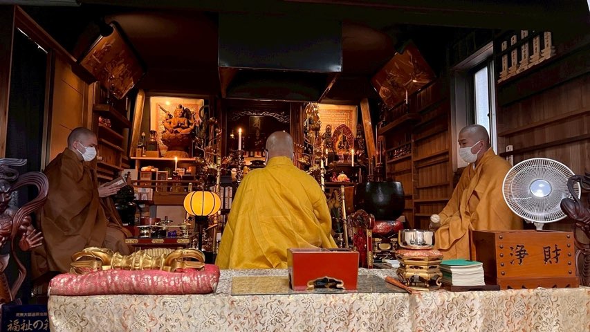賑やかで温かみのある紙芝居の後は、雰囲気が一転して厳かな法会の時間。